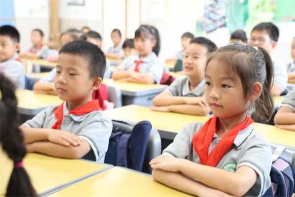 在道德与法治课上,老师们并非简单说教,而是通过创设情境、模拟升旗等方式,引导低年级学生认识国旗国徽。