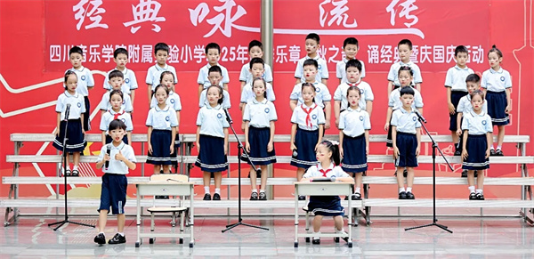 稚嫩童声里,流淌着文化的传承;朗朗诵读中,回荡着精神的洗礼。此次“诵经典”活动,四川音乐学院附属实验小学以经典为媒,让孩子们在回望抗战历史中厚植爱国情怀,在歌颂祖国中坚定理想信念。未来,学校将继续以经典文化为纽带,让民族精神在代代童声中赓续,愿这份真挚的爱国情,伴随附小学子一路成长,更愿这蓬勃奋发的力量,激励他们去逐梦更美好的未来,续写民族复兴的崭新华章!(翁玉华 通讯员 李慧 娄天月)