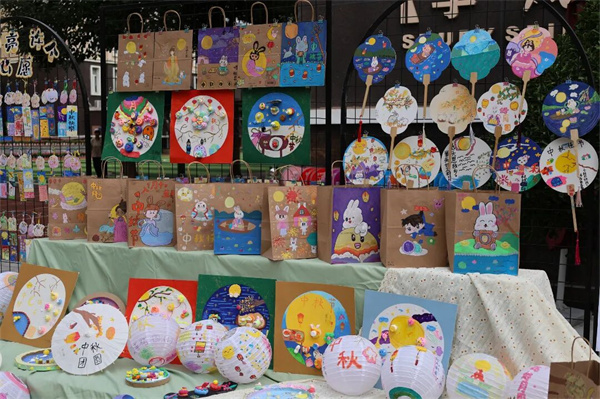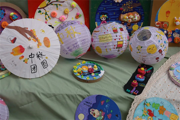 值得一提的是,在精彩的节目演出后,师生与家长还前往本次活动的静态展示区,欣赏灯笼、团扇、小报等学生作品,延续中秋民俗的乐趣。
