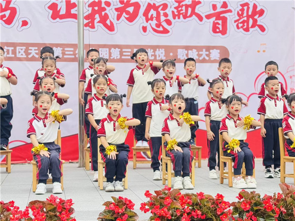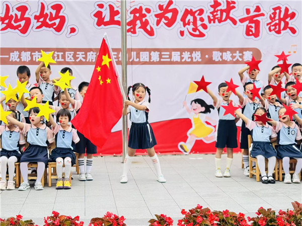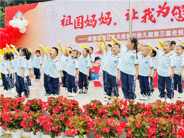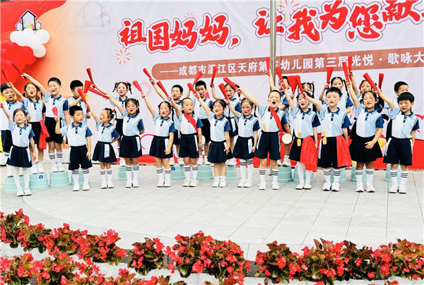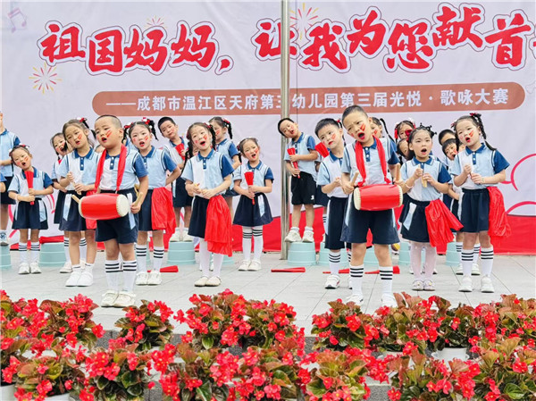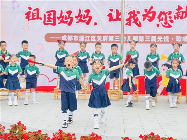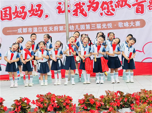 为弘扬民族精神,传承红色基因,让幼儿真切体验和感受爱国主义教育,培养幼儿的爱国情怀,成都市温江区天府第三幼儿园开展了“童声唱家国岁月 稚心迎盛世华章”国庆节主题活动,共同为祖国母亲献上最纯真的贺礼!