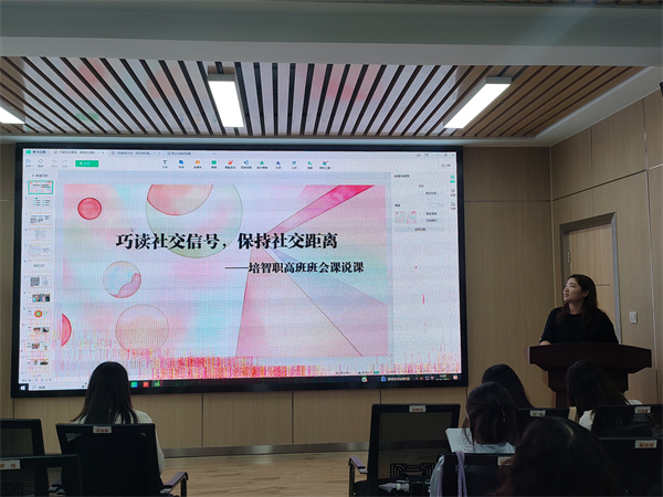 熊慧就《巧读社交信号,保持社交距离》主题班会进行说课分享。针对职高学生社交距离把握不当的问题,她运用“社交圈理论”构建认知框架,通过视频导入、情境演绎和小组合作,引导学生掌握“一臂”社交距离及社交信号的解读与应对技巧,提升学生的社交适应能力。