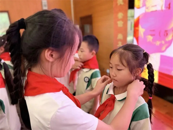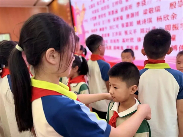 五年级队员为新队员佩戴红领巾、二年级班主任为新队员颁发队员证9rE四川教育在线-四川教育讯息