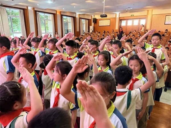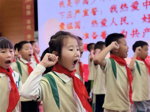 近日,成都高新新科学校在阶梯教室举行“强国复兴有我 争当新科好少年”建队日入队仪式。二年级75名同学正式加入中国少年先锋队,在红领巾的见证下,开启了他们与祖国共成长的崭新篇章。9rE四川教育在线-四川教育讯息