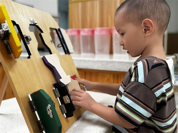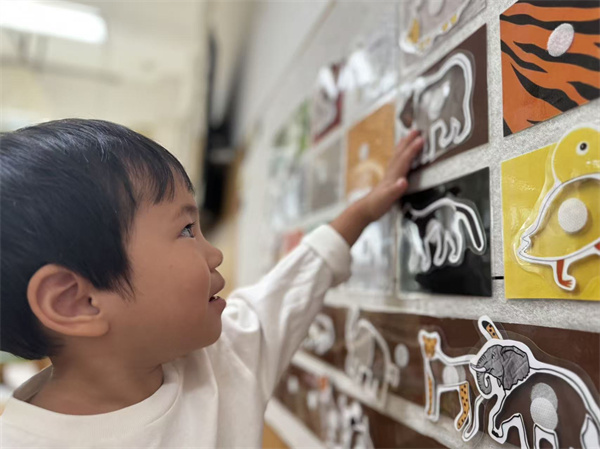 益智区中,彩色拼图、串珠玩具格外吸睛。孩子们在动手操作中锻炼逻辑思维与手眼协调能力。