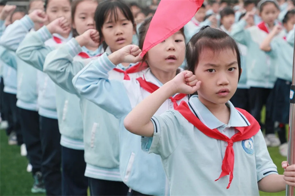 “我是中国少年先锋队队员,我在队旗下宣誓……”大队辅导员的领誓声响起,119只小拳头高高举起,清脆却坚定的誓言回荡在校园里,每一个字都藏着他们对成为“少先队员”的满心向往,也藏着对未来的郑重承诺。