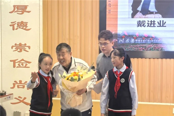 2025年10月21日上午,四川大学附属实验小学江安河分校(以下简称:川大附小江安河分校)特邀著名地质学家戴进业教授,为六年级同学开展了题为“海洋世界探秘”的科普讲座,带领同学们开启了一场蔚蓝深海的探索之旅。