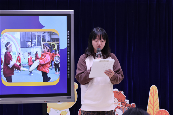 随后三位年级组长针对各年龄阶段幼儿动作发展特点,从操节设置、器械选择、动作设计等方面进行了早操编排介绍。