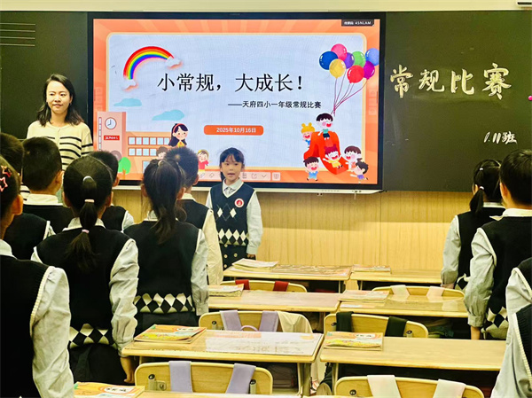“少成若天性,习惯成自然。”近日,四川天府新区第四小学校(以下简称:天府四小)举行一年级常规比赛。