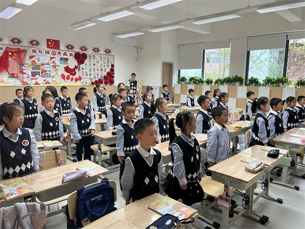 “铃声响,心安静。”当上课铃响起,孩子们迅速回到座位,书本文具整齐摆放在指定位置。“头正、肩平、臂弯、足安”,这些要求已经融入他们的身体记忆。教室里安静下来,专注,成了最美的语言。