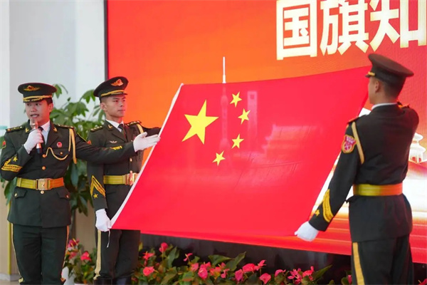 教官以互动形式讲解国旗含义,孩子们踊跃回应,在互动中了解国家象征;在游戏中厚植家国情怀。1c5四川教育在线-四川教育讯息