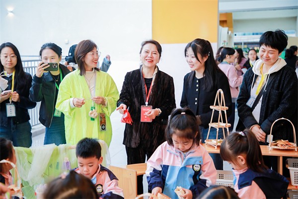 温江区天府三幼以“多方协同育人共同体”建设为核心,同与会者展开深度交流。与会者沿“协同”“赋能”“共生”三条路线,沉浸式观摩幼儿园多方协同育人实践场景。