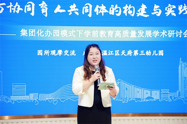 在点评中,她表示,温江区天府三幼以问题为驱动,构建协同育人共同体的实践路径清晰、落地扎实,已卓有成效地形成以儿童为核心、多方主动参与的优质育人样态。