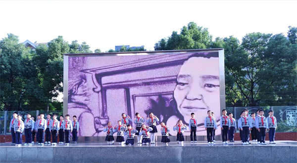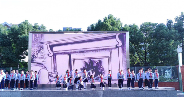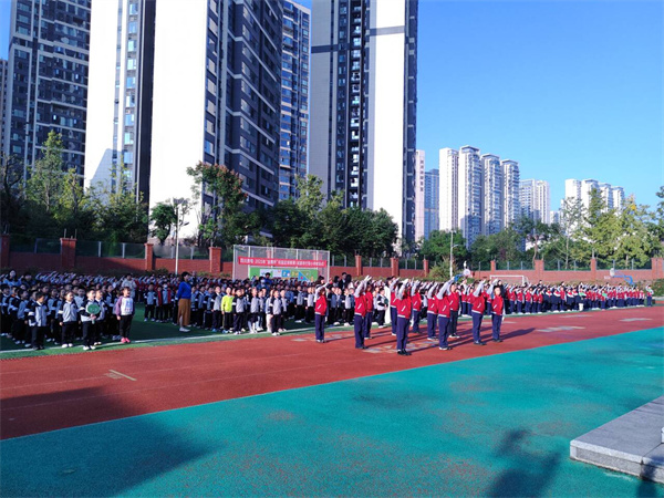 成都市行知小学花照壁校区,重阳节,升旗仪式