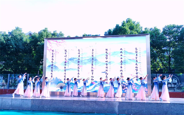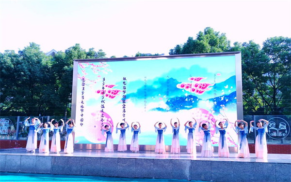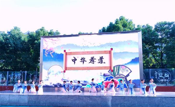 三(6)中队的队员们带来舞蹈《中华孝道》,轻柔的舞步伴着“寸草春晖”的深情,抬手间的躬身礼、转身时的轻扶动作,把中华孝道的绵长与重阳敬老的温情轻轻融进了每一个舞姿里。