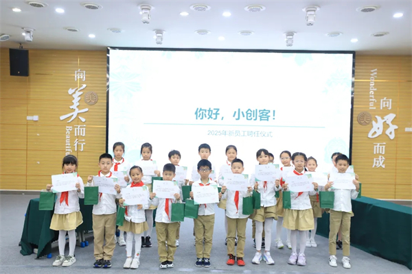 当坚守与热忱相遇,当传承与创新交织,四川天府新区美岸小学“种心创美”校园公司换届仪式在报告厅温情上演。这是一场特别的仪式,既为老员工的光荣“退休”画上圆满句号,又为新员工的崭新旅程吹响号角。