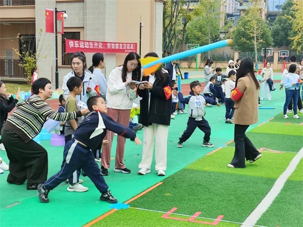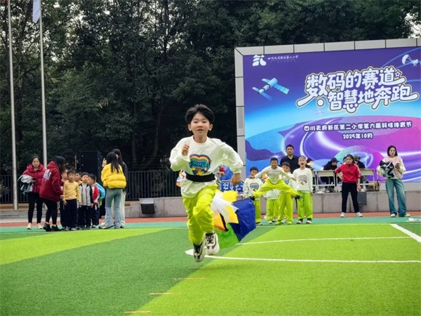 当操场变成游乐园、科技馆,孩子们化身导弹运输家去穿越时空轮、挑战空气阻力……这已经不是单纯的运动会,而是跨越学科边界的科技与体育融合盛会。2025年10月28日,四川天府新区第二小学(雅园校区)成功举办了以“数码的赛道·智慧地奔跑”为主题的校园科技体育节。孩子们在赛场上尽情地奔跑,在项目活动中探索科学知识,让智慧的火花在运动中迸发,完美诠释了“学科融合”的无限魅力。dLe四川教育在线-四川教育讯息