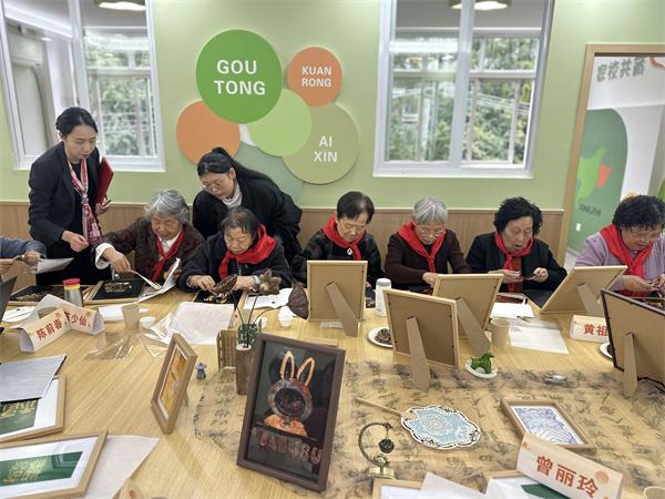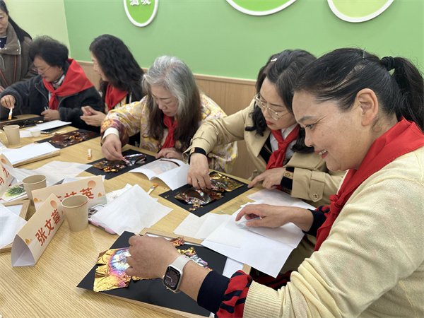 传承,是对过往最好的致敬。在非遗手作环节中,退休教师们将今日的温暖时光永久纪念。金箔璀璨,在象征教育成果熠熠生辉的同时,也寄托了学校对退休教师们晚年生活的美好祝愿。