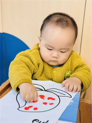 在咿薇托育新华南园,孩子们化身小小的“时光魔法师”,用手指点染缤纷色彩,为画中爷爷奶奶的发梢添上灵动色彩。