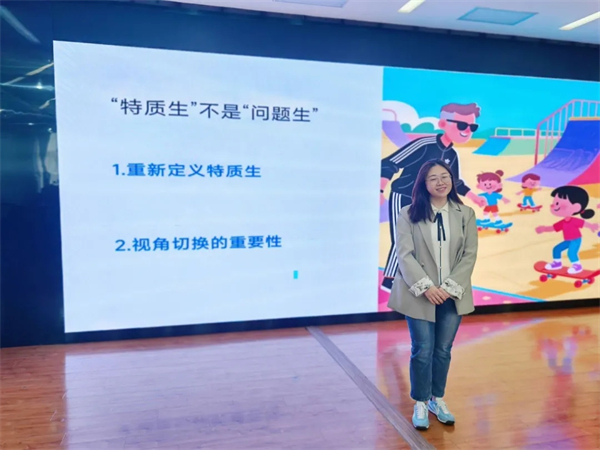 思想的碰撞激发出实践的火花。在随后的分享环节,孙维佳老师以《让特质生闪耀:理解、接纳与赋能》为题,一句话道出了其策略核心:“发现优势,创造平台,让独特的星星在集体中闪耀自身光芒。”王悦霜老师则通过《用爱叩响心门——一位特殊学生的成长叙事与教育探索》,深情总结道:“以持久的耐心为钥,才能叩响封闭的心门,静候生命的成长。”两位老师的实践案例,为理论提供了生动的注脚。