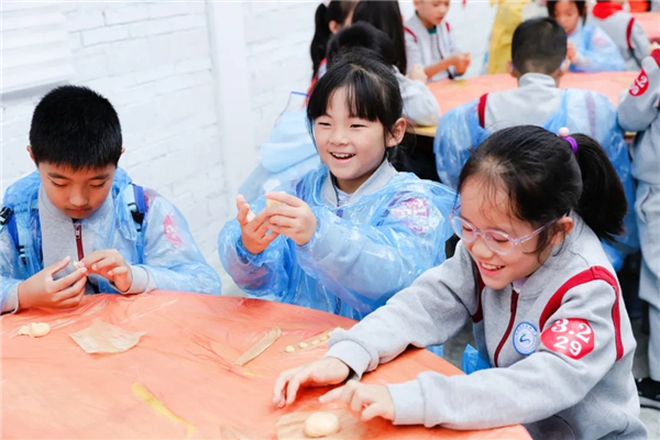 离开博物馆,孩子们迎来了充满烟火气的实践环节。玉米粑粑制作,工作人员早已备好新鲜玉米糊、蒸笼和模具。老师先示范揉制玉米糊的技巧,孩子们跟着老师笨拙又认真地操作着,有的把玉米糊捏成了圆滚滚的小球,有的压出了小饼,虽然形状各异,但每个人都格外投入。孩子们捧着自己做的粑粑,脸上满是幸福的笑容,也尝到了“劳动收获”的香甜。