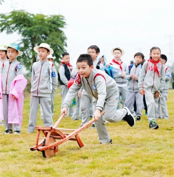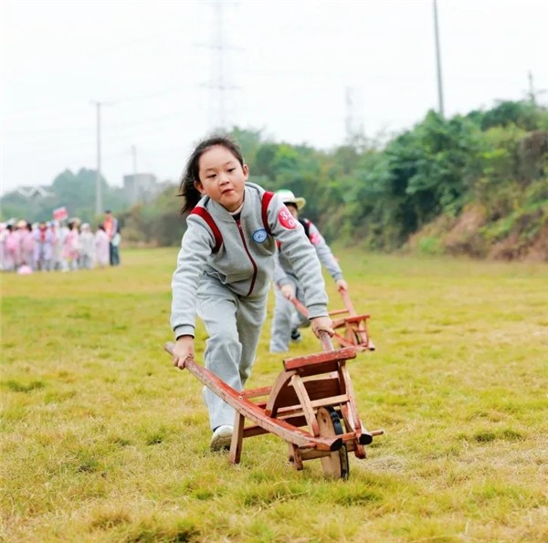 在鸡公车体验区,孩子们好奇地围着这个“老式交通工具”,在老师的帮助下,推鸡公车大赛如火如荼展开了,“原来以前的人是这样运东西的!”“推起来有点重,但很好玩!”孩子们一边体验,一边叽叽喳喳地讨论,在玩乐中了解了传统文化。