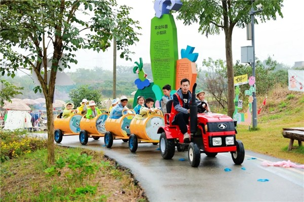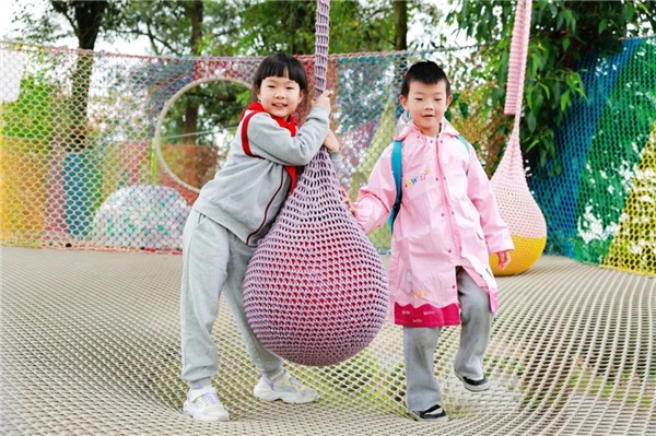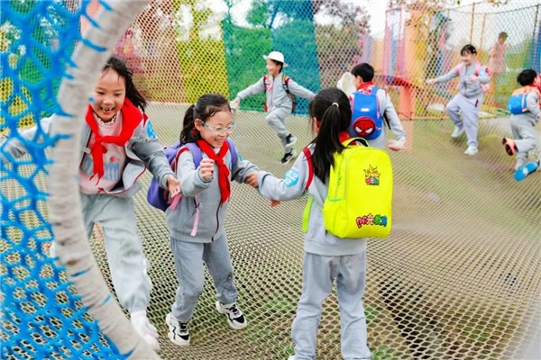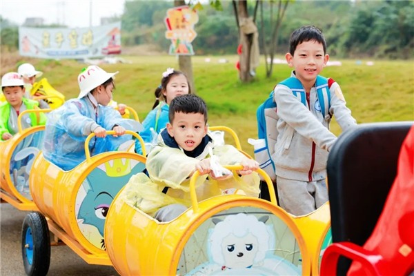在飞鱼乐园里,孩子们像快乐的小鸟一样玩耍,有的坐着小火车,欣赏田园里美丽的秋日风光;还有的在攀爬蹦床上跳跃,笑声随着身体的起伏不断传开,每一个角落都充满了童真与活力。