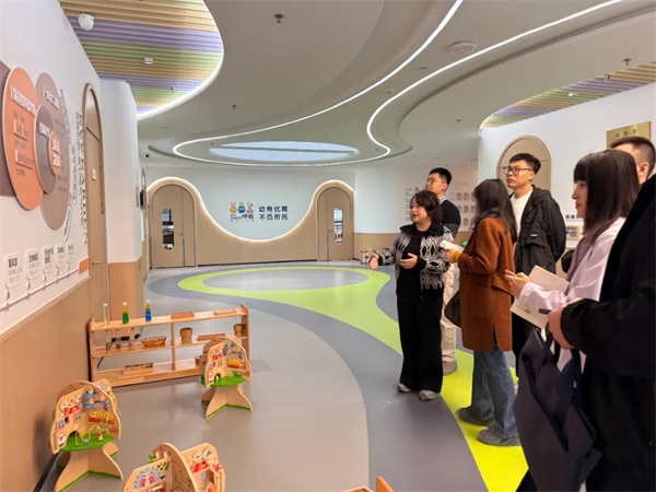 考察团先后走访了位于天府软件园的咿薇托育·第七婴幼儿之家与坐落于锦城社区综合体的咿薇托育·第一婴幼儿之家。通过实地观摩,考察团细致了解了咿薇托育在产业园区与城市社区两种不同环境下的运营模式、课程设置及管理标准。咿薇托育依托“一园一品”的服务特色,有效满足了从科技人才到普通居民等不同群体对优质、便捷托育的需求,其标准化、专业化的服务体系给考察团留下了深刻印象。