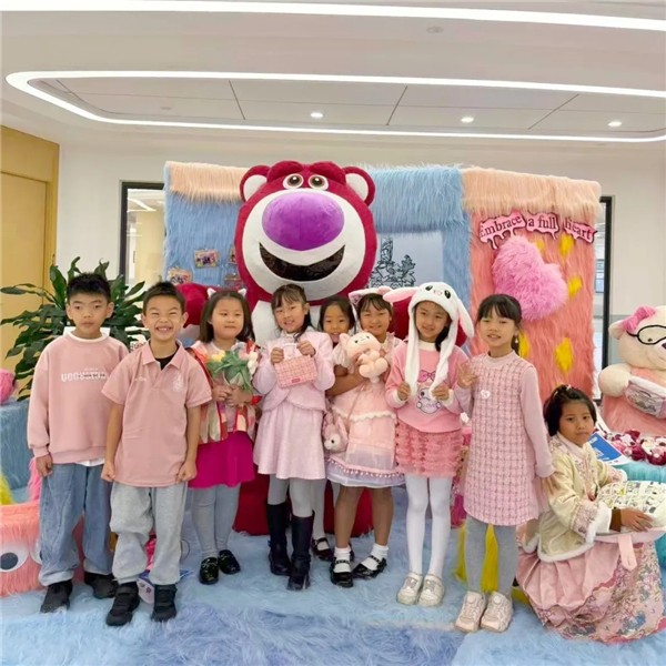 活动当天,师生与家长志愿者们身着各式粉色服饰,在深秋的校园中传递温暖。清晨,两米高的粉色互动玩偶现身校门,为晨间入校的问候增添了亲切与活力。除持续进行的爱心募捐外,现场还设有精心布置的义卖区。所有义卖品——从实用文具、定制玩偶,到精选图书与纪念徽章,皆由在校师生亲手制作或筹备。本次活动所筹得的善款,将全部捐赠给四川省肿瘤医院儿童病房。