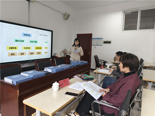汇报中,课题组从研究背景、阶段目标、实践进展及初步成果等方面展开阐述。结合《3-6岁儿童学习与发展指南》要求,重点介绍了“2+3+4”研究路径,室内打造互动食育角,投放幼儿种植工具与食材认知卡片,室外开辟种植园,让幼儿亲历蔬菜生长全过程,家园联动形成教育合力。