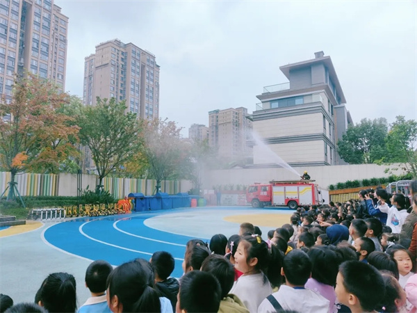 消防员叔叔闪亮登场!消防车开进幼儿园,孩子们惊喜连连。抢水杯游戏、喷水演示,孩子们在玩中学、学中玩!最后,幼儿代表送上感谢,大家一起参观消防车,留下勇敢的合影!
