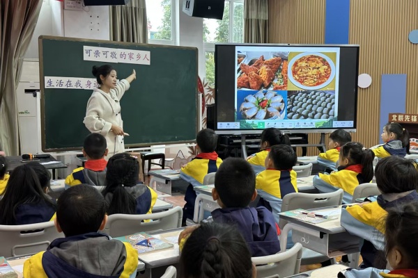 崇州市怀远小学鲁婧老师带来的《可亲可敬的家乡人》,从崇州本土风土人情出发,以“认识—感受—了解—感恩”为教学脉络,引导学生从身边人物逐步拓展至各行各业的劳动者。课程借助真实故事与影像资料激发学生情感共鸣,并将感恩意识有效转化为具体行动,切实增强了学生的社会责任意识。