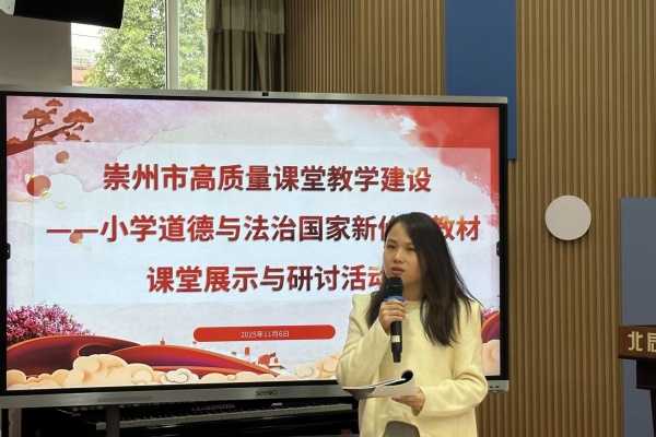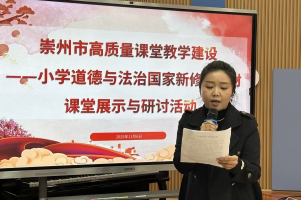 为深入推动国家新修订教材的教学实践,全面提升小学道德与法治课程的教学质量,2025年11月6日上午,崇州市高质量课堂教学建设——小学道德与法治国家新修订教材课堂展示与研讨活动在崇州市辰居小学顺利举行。来自全市各校的学科教师代表齐聚一堂,以课例展示与互动研讨为载体,共同探寻教学创新的有效路径,为优化课堂教学提供了丰富启示。
