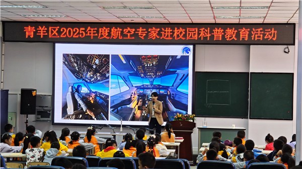近日,由青羊区相关部门主办的2025年度“航空专家进校园”科普教育活动走进成都市青羊实验中学附属小学校园。本次活动旨在普及航空科学知识,激发青少年对航空航天领域的兴趣与热爱,培养未来的科技创新人才。