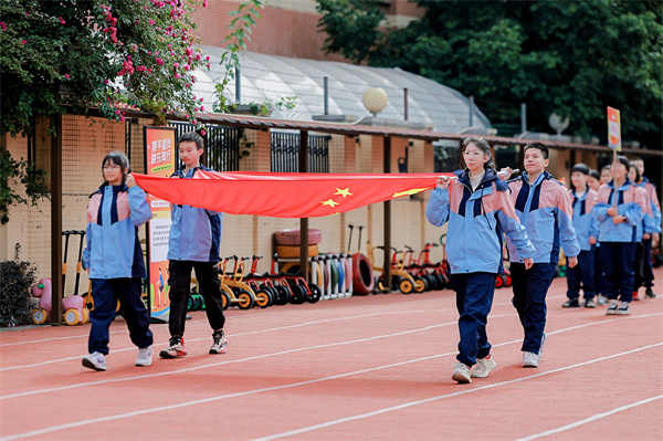 入场仪式后,庄严的升旗仪式如期举行,全体人员肃立致敬,爱国情怀在这一刻深深扎根。