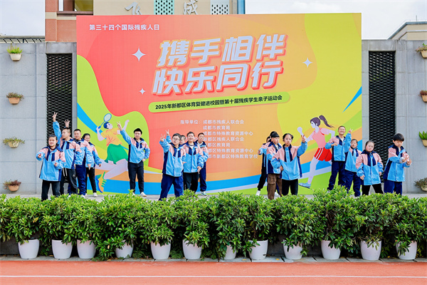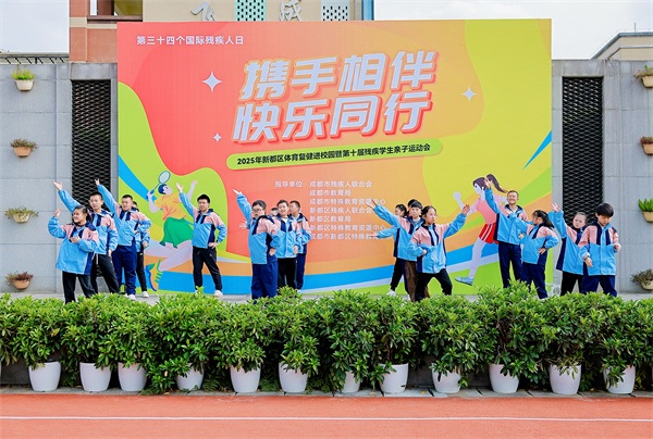 暖阳映笑脸,欢声满校园。2025年11月11日下午,成都市新都区特殊教育学校(以下简称:新都特校)内欢声笑语、活力涌动,2025年新都区体育复健进校园暨第十届残疾学生亲子运动会在师生与家长的共同期待中温情启幕。本次活动在新都区教育局、区残联的支持指导下,由新都区特殊教育资源中心、区特殊教育学校联合承办,以“携手相伴、快乐同行”为主题,为区域内特教学生、家长搭建了互动交流的平台,让运动激情与亲子温情在校园里尽情绽放。