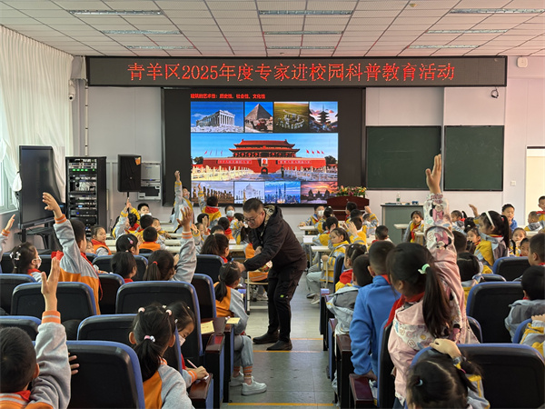 2025年11月11日,“科学教进校园”系列活动之《建筑梦》在成都市青羊实验中学附属小学精彩开讲。本次活动特邀一级注册建筑师、四川省建筑设计研究院设计四院景观所所长陈骁老师,为孩子们带来一场生动有趣的建筑启蒙课。