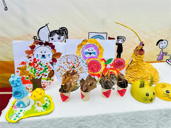 天府新区第六幼儿园坚持“孩子能做的,绝不包办”原则,赛场的秋意氛围全由孩子们亲手打造。拓印的金黄南瓜、黏土捏的胖墩墩柿子、班牌的创意表达……每一件作品都出自孩子之手,拒绝教师代劳。当这些充满童真的秋日创作点缀赛场,整个操场都变成了专属孩子们的秋日运动乐园。