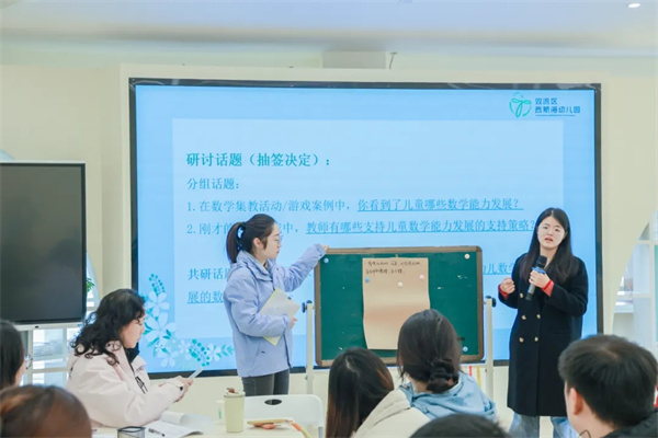 在交流研讨环节,参会人员不仅围绕数学能力发展、教师支持策略等话题展开深入讨论,更是梳理出了幼儿园、小学、家庭三类场域中,能够促进幼儿数学学习与发展的系列数学小游戏。通过互动交流、思维碰撞,大家一致认为:游戏是激发儿童数学兴趣、培养数学思维能力等的有效途径。