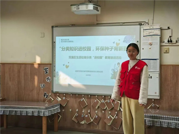 双流区城市管理和综合行政执法局的培训老师结合幼儿的认知特点,用生动形象的语言、色彩鲜明的图片,向小朋友们详细讲解了可回收物、厨余垃圾、有害垃圾和其他垃圾的分类标准、识别方法及投放要求。老师通过“什么垃圾投哪里”的趣味提问,调动起孩子们的参与热情,大家积极举手抢答,在互动中快速掌握垃圾分类小知识。