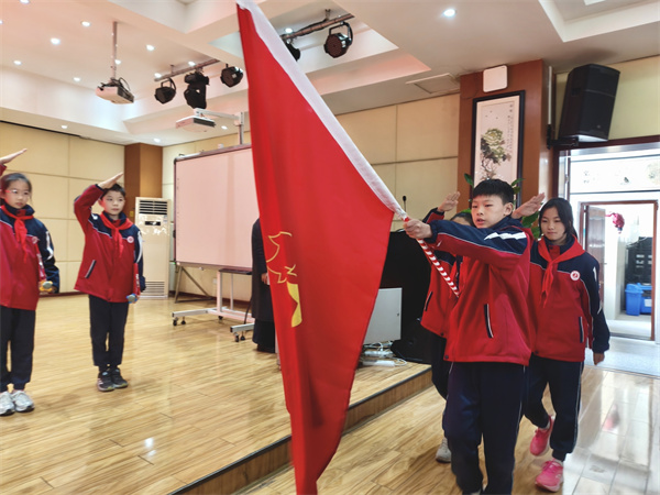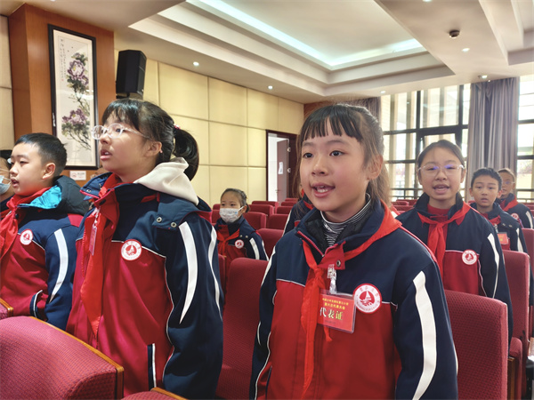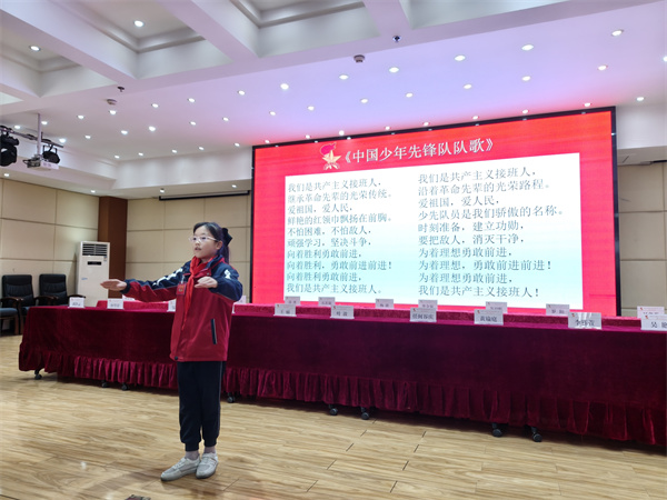 大会在雄壮的国歌声中正式启幕。伴随着铿锵有力的出旗曲,少先队旗手与护旗手迈着整齐矫健的步伐步入会场。在陈梓杨同学的指挥下,全体与会人员与少先队员齐声高唱中国少年先锋队队歌,以饱满的热情抒发对祖国的无限敬意。