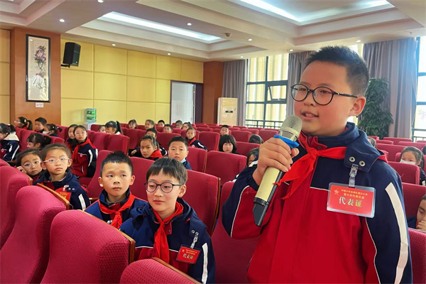 学校党支部书记、少工委主任叶波为大会发表致辞。他指出,少年儿童是祖国的未来与希望,勉励全体少先队员不忘初心、立志成才,努力成长为德智体美劳全面发展的社会主义建设者和接班人。每一句关怀与激励,都凝聚着对少先队员的深切期待,鼓舞大家勇敢追逐梦想,坚定前行。