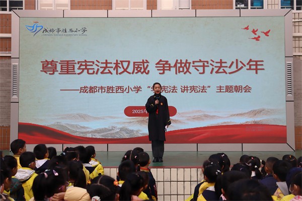 法治教育,是一项润物无声的灵魂工程。此次“国家宪法日”主题活动,不仅播撒下尊法、学法的种子,更在少年心中,筑起关于规则与正义的长城。未来,成都市胜西小学将继续秉持依法治校理念,让法治阳光普照校园角落,护航每一位胜西学子,在法治蓝天下,向阳而生,逐光而行。(赖波 通讯员 陈俊霖)