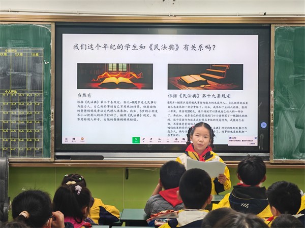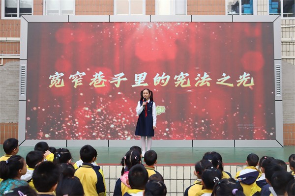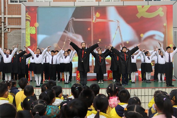 四年级二班的全体同学用情景剧《宪法之光,照亮征程》将宪法守护成长的故事鲜活呈现。