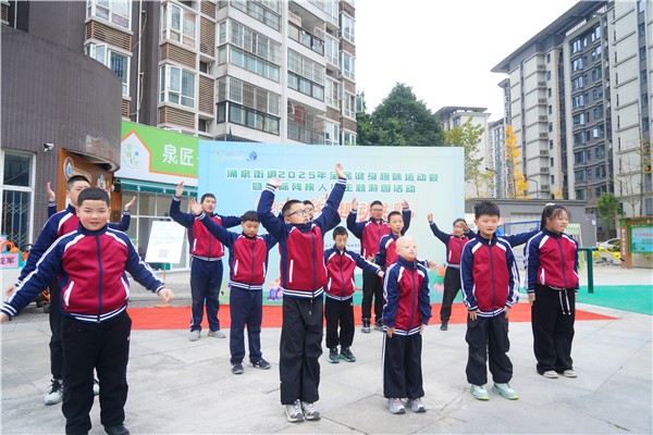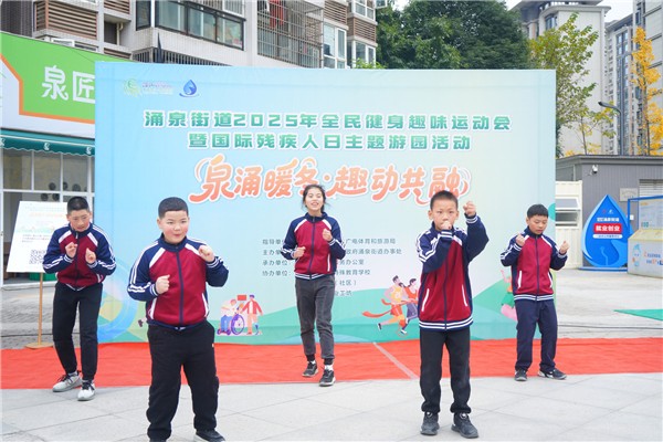 2025年12月3日下午,温江区涌泉街道“泉涌暖冬·趣动共融”2025年冬季趣味运动会在泉匠·融乐家园广场正式拉开帷幕。成都市温江区特殊教育学校(以下简称:温江特校)的师生们通过暖场表演与校坊友谊赛的双重参与,成为本届运动会中备受瞩目的“温暖主角”。