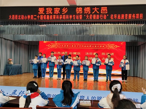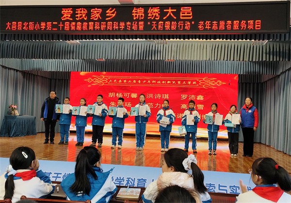 冬阳煦暖,文脉流淌。2025年12月4日上午,大邑县北街小学第二十届情趣教育科研周“爱我家乡·锦绣大邑”科学专场活动暨“天府银龄行动”老年志愿者服务活动在学术厅举行。此次活动作为“天府银龄行动”及县老科协“理想领航”关爱青少年系列的重要组成部分,特邀天府银龄志愿者走进校园,与师生及家长代表共赴一场融汇乡土深情与科学精神的成长之约。
