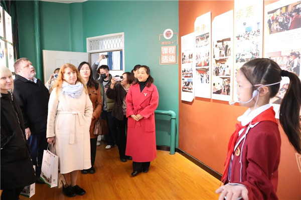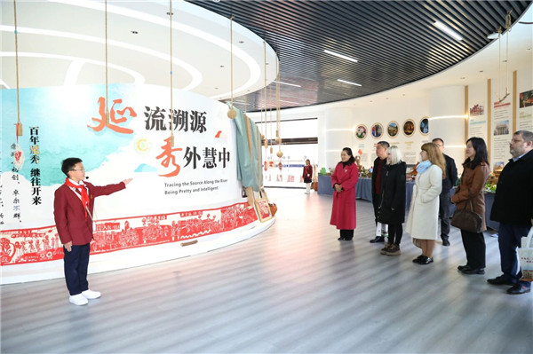 凝聚着延秀小学精神内核的校园文创礼物,以及题写着“海内存知己,天涯若比邻”的书法作品,传递的是延秀师生对远方朋友真挚的情谊,也是对中白教育交流的美好祝愿。在学校中外人文交流中心和博物展陈馆内,延秀学子们担任英语解说员,清晰生动地为来宾进行介绍。这里既陈列着来自世界各国友校赠予的珍贵礼物,每一件都承载着一段跨越山海的情谊;更有学校师生对彭州文物的探索成果,每一处细节都彰显着中华传统文化的深厚底蕴。