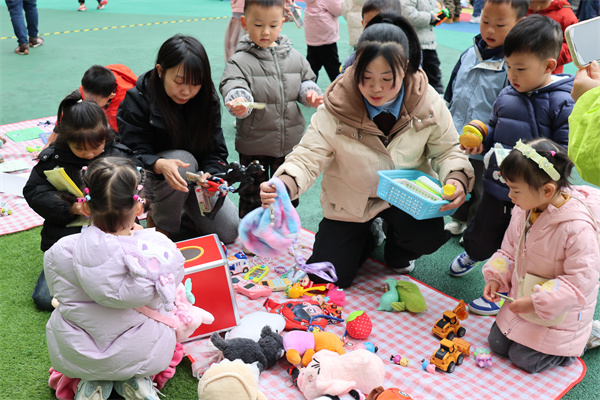一时间,幼儿园里人声鼎沸,热闹非凡。“小老板”和“买主”们的欢笑声、叫卖声、讨价声此起彼伏,汇成了一曲充满童趣的集市交响曲。