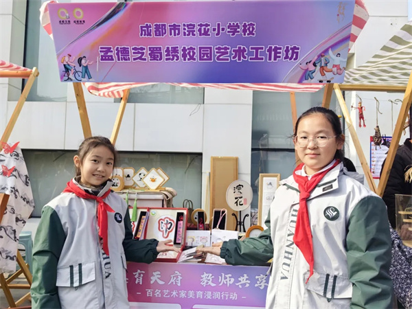 从蜀锦织造博物馆的沉浸式研学,到金沙遗址非遗集市的多国友人点赞;从国际非遗节的全球亮相,到“泛博物馆校园”的单日500人次体验——浣小学子用1200多万针的坚持,诠释“被针扎到也不放弃”的匠心。正如三年级学生李萌所说:“每一针都像在和古代绣娘对话,感觉自己也成了非遗传承人。”