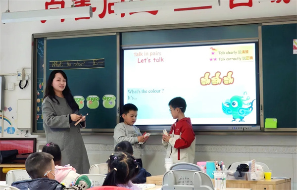 英语组罗涵、张欣两位青年教师参与赛课,分别执教一年级上册《Colours》与四年级上册《Unit4 Wonderful seasons(Start up)》。罗涵通过趣味问答、颜色配对游戏、彩虹填色实践等多元形式,实现知识传授与能力培养的高效融合;张欣以四季为主题,借助歌曲导入、分层阅读设问、角色扮演与小组采访等活动,引导学生深化对季节的理解并灵活迁移语言。两位教师在赛课中不断优化教学策略,显著提升了低年级趣味教学与高年级主题教学的实践水平。