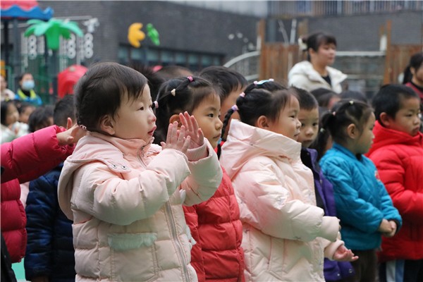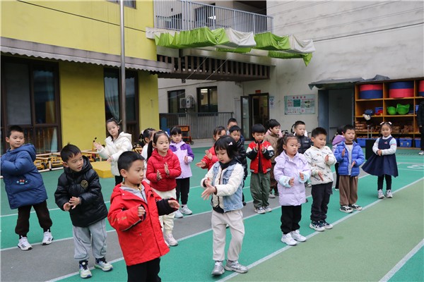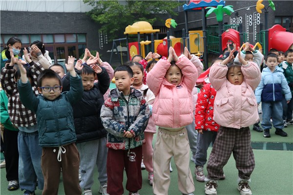 简单有力的歌词、活泼可爱的动作,将预防传染病的要点融入其中,现场的小朋友们也纷纷跟着模仿,整个操场变成了传递健康能量的小舞台。